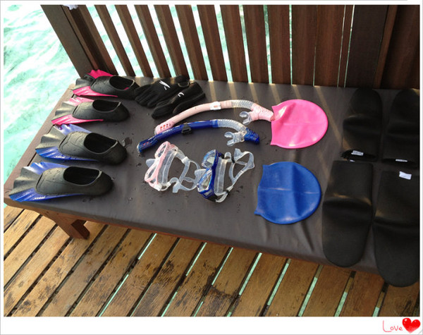 吃过午餐,下午我们准备在房间附近浮潜啦,因为带了很全的装备过去,不潜怎么行!事实证明我们应该跟船出海去更好的位置浮潜的,那里看到的鱼更多更美呢!