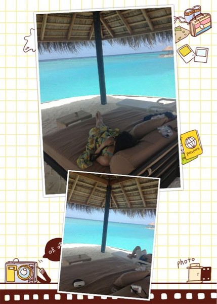 在这一片海滩上有一些的发呆亭,可以早点来占一个舒服的,有床可以躺的。带上你的浮潜三宝,书,零食,水。老外貌似都挺扛晒的,白天要不就水里泡着,要不就是沙滩上晒着。我是怕晒哦,但是又不想错过麻袋最美的时刻,要知道,太阳最毒的时候就是最美的时候,所以防晒的可真是不能马虎。原来看游记都是推荐的安耐晒,固然是强大的,我一般是隔1个小时抹一次,基本上是没有晒黑。另外我还带了一瓶也是资生堂的资生堂新艳阳夏明效防晒乳SPF50,也很好用啊,就是擦了肤色偏白,就当是抹了BB霜吧。