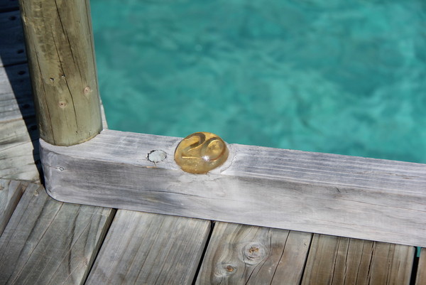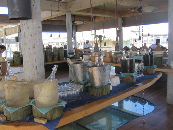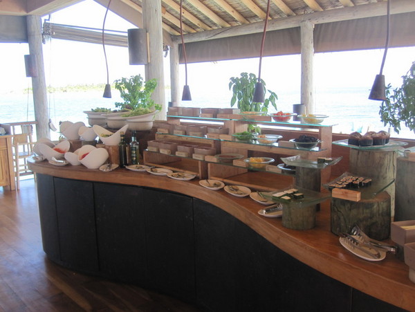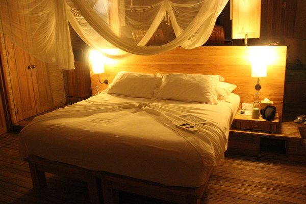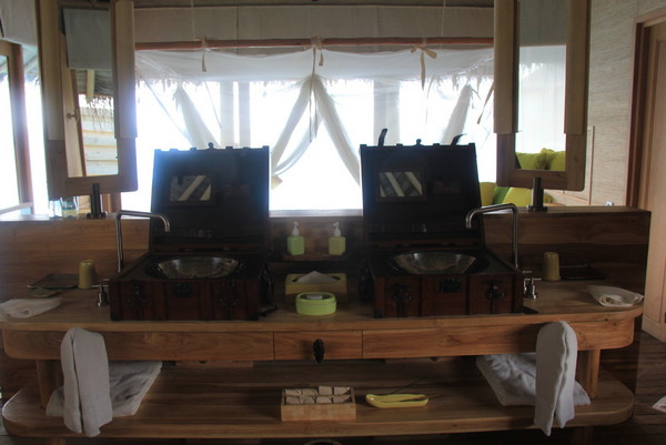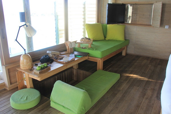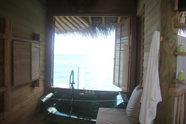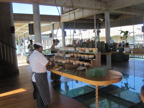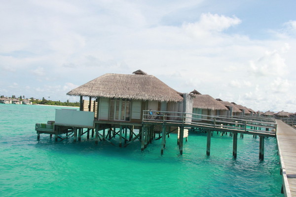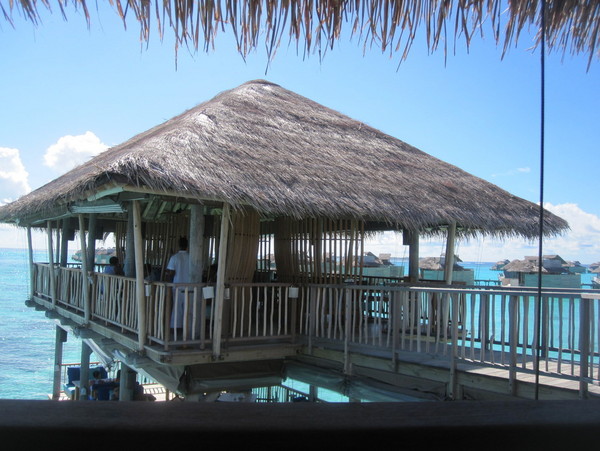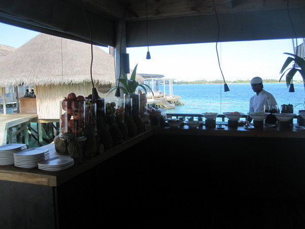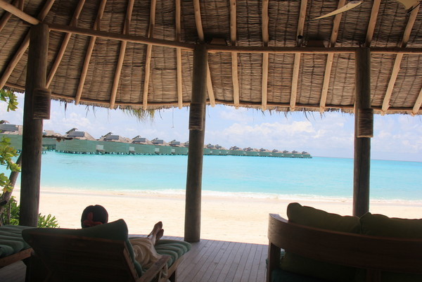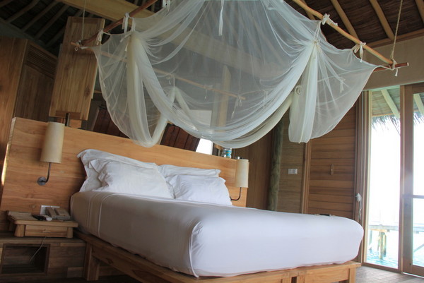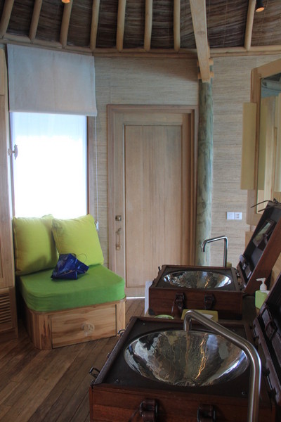 我们的房间是20号水屋,是最靠近餐厅和大堂的一条水屋的最里面的,比那对北京朋友的60几号交通方便多了,这也是老婆在回酒店预订email时要求的要景色美的位置好的房间的关系