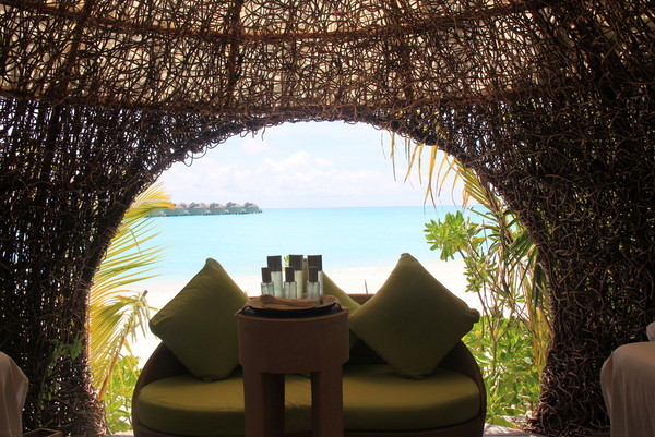 spa的地方景色那是绝美啊!每个做spa的地方就像一个小鸟巢,外面就是大海,太美啦