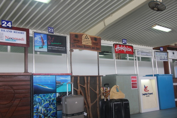 一出口就有各个酒店的小黑接人,有位热情的小黑会说中文为我们找到了Six Senses Laamu的接待员,原本他是接别人的,谢谢啦!在各种接机柜台中我们的Six Senses的还算有特色吧