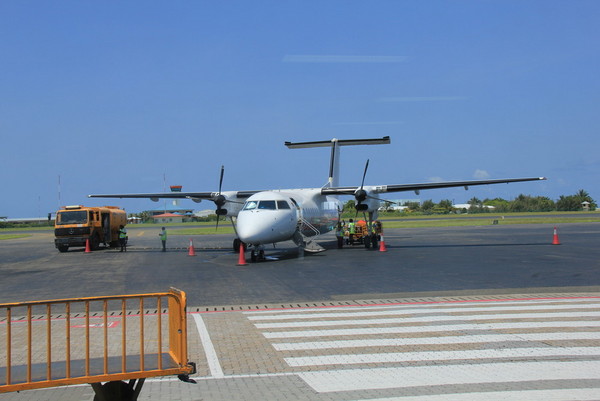 到Kadhdhoo机场有时还会中途停另外一个机场,我们去的时候就停了,我们还以为到了准备下去,空姐没让,等上来一些人后再次起飞,差不多一个小时才到Kadhdhoo