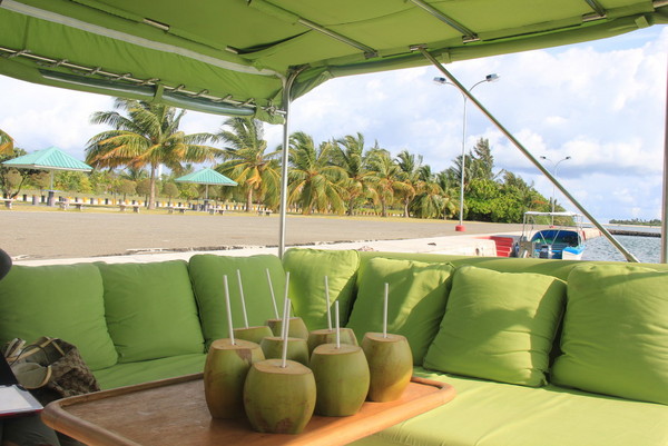 之后跟着接我们的小黑上了快艇,上面已经准备了椰子给我们喝咯