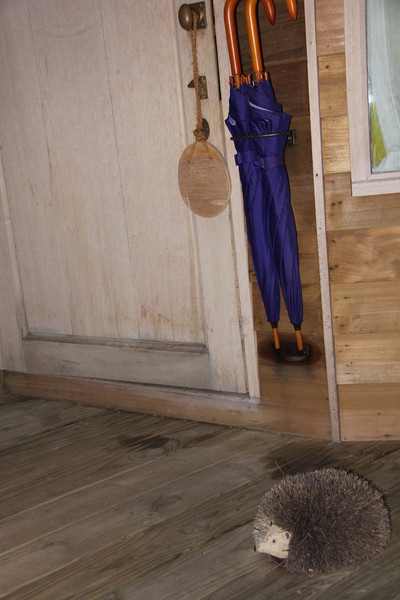 每个房间前都有个小刺猬用来擦脚上的沙子,木桥边也隔一段就有个用来洗脚的水缸,我们的水屋边正好有个,我老婆正在洗哦