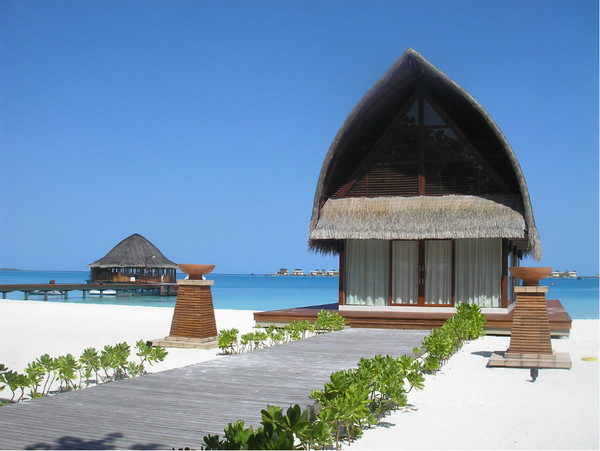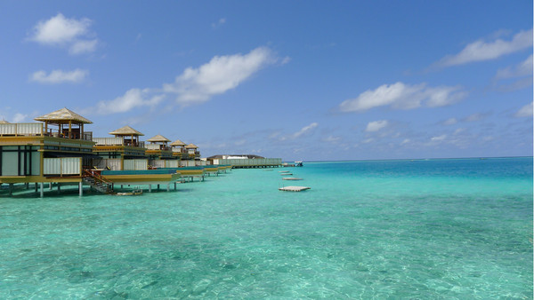 经过35分钟的美妙空中体验,我们来到了美丽的Angsana Velavaru岛,又名海龟岛、AV岛。这个岛比Ihuru+Vabbinfaru都要大,她的特色之处就是沙滩别墅跟水屋别墅完全分开,美丽的水屋InOcean Villa完全脱离于主岛之外,漂浮在海中央,所以美其名曰“海中阁”。相对于Ihuru的精致、静逸,Vabbinfaru的低调奢华,Velavaru更有一种大气和激情四射的感觉,岛很大,配套设施很成熟,不管去水上活动、康体活动、还是美容做SPA都很方便,中文服务无处不在,主岛有4种不同类型的沙滩别墅79间,海中阁有不同类型的水屋34间,沙屋有1个主餐厅和1个海鲜餐厅;水屋有1个意大利餐厅,每隔一个小时有一班轮渡往返沙水屋之间,很方便。