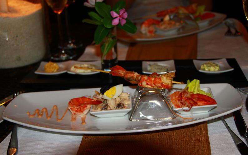 起初选择R岛很大原因是它包三餐,而且从攻略反馈上看质量还不错,亲历之后果然如此!除了固定厨师外,岛上的工作人员都会轮流当值,烹饪出不同地区特色的美味~~岛上菜单每周7天都不重样,周三是海鲜餐厅前户外BBQ,周五是一道道上菜的法式大餐(请注意当晚菜单上写白酒红酒是要额外收费的哦,原因不明。。。其余普通的正餐时段的酒类都是不限的)