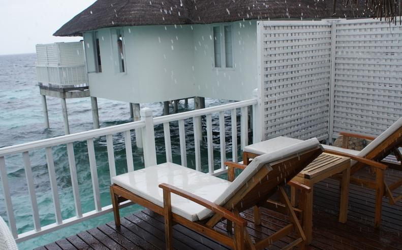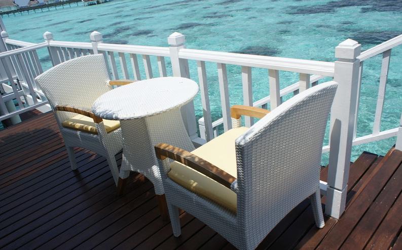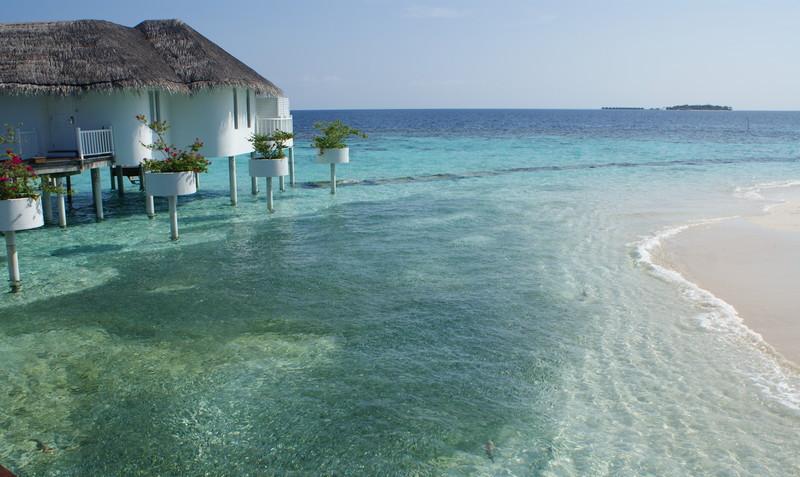 露台的台阶直通海水,因为水浅,下面又有珊瑚,