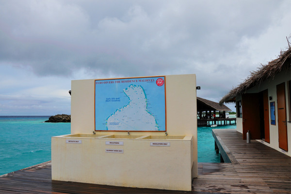 第一站开到潜水中心,地处岛的西面,阴雨天时风更大,瘦一点的人站在露台上绝对有被刮到海里的可能。
