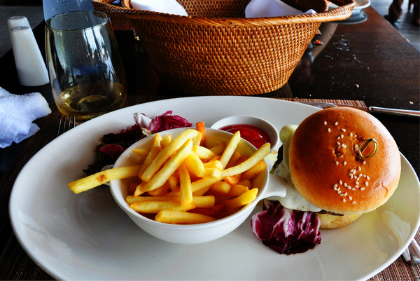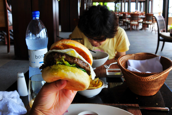 结果仍然是她看到这个海南鸡饭以后就要来抢我的汉堡——鸡蛋是生的,她不吃。