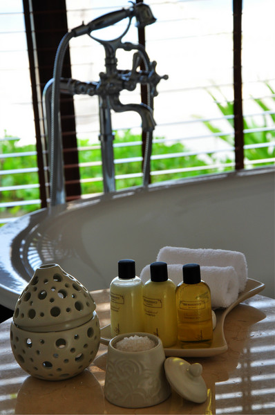 一缸花瓣浴至少需要8瓶房间里提供的浴液,水龙头的压力要尽量大,才能让冲出来的泡泡多而丰富。
