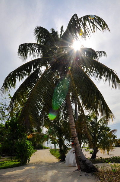 一直等在这对情侣后面,想拍阳光透过椰树射出的光束。