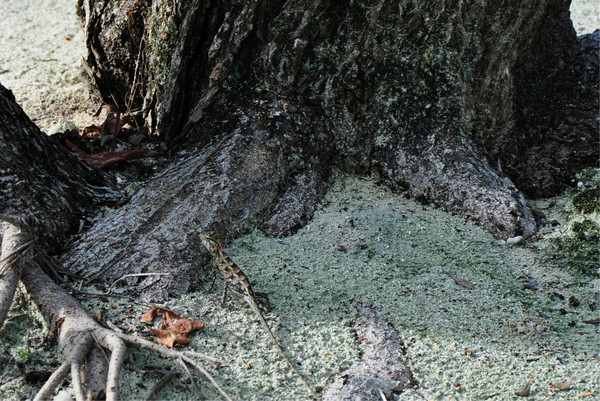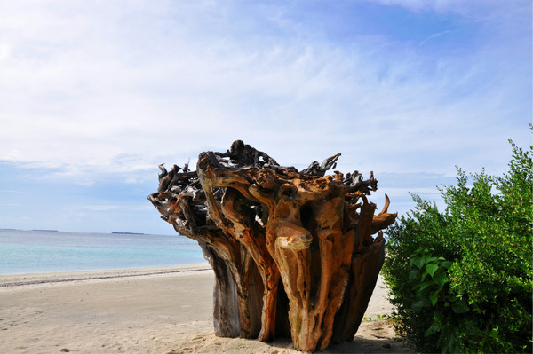Spa中心栈桥前的大树根,据说是从泰国运来的。
