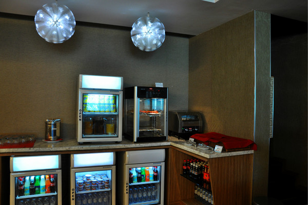 健身房了有水和水果可以自取,脸皮厚一点的话,倒是可以来这里解决睡不够喝的问题。