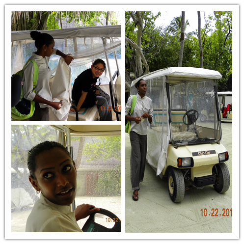 送我们的MM在车上问我们想不想坐电瓶车在岛上转转,她可以带我们去各处参观。