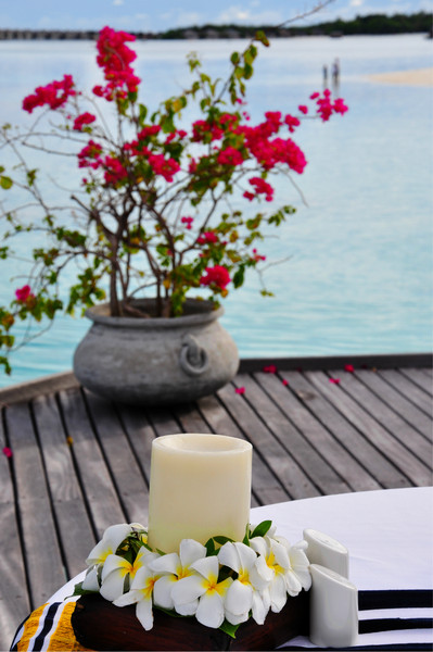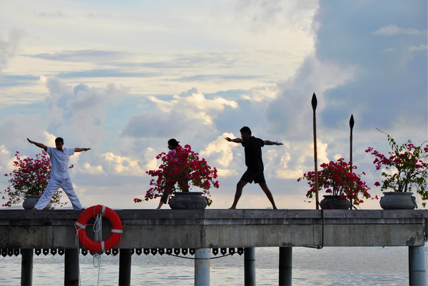 Spa中心外有瑜伽台,早上可以跟着教练伴着朝霞做瑜伽,健康的生活~