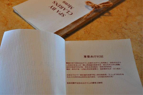 价目表和各种Spa的介绍都有中文,房间里也放了价目表,却是全英文