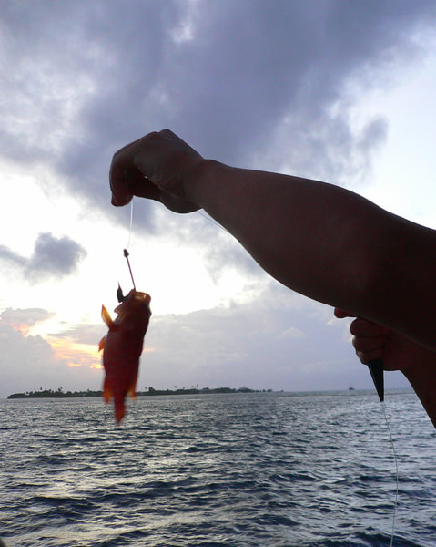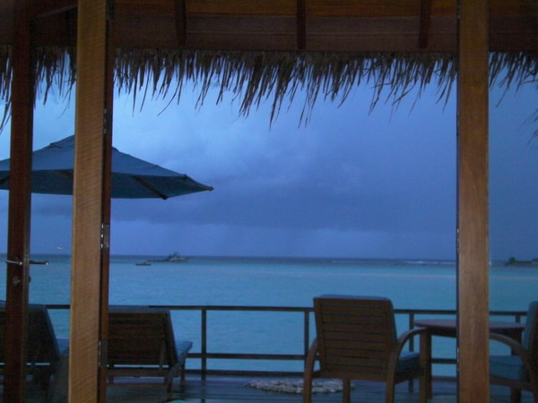 veli的鱼比较多,很多鲜艳颜色的大鱼,下起雨来整个小岛显得特别浪漫有情调~时不时我们会从主岛溜达过来玩耍,可惜没拍照就自己享受了~ 哈哈