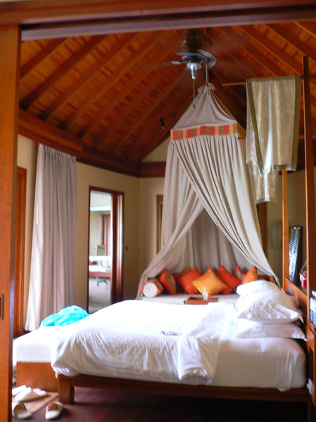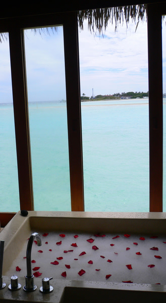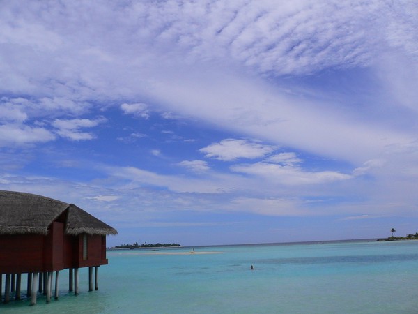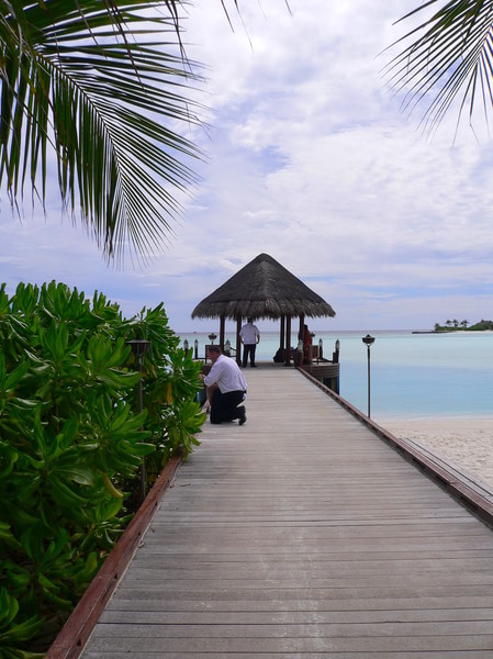 veli是要坐小船摆渡过去的一个小岛,是全部水上屋形态的,比水上豪华别墅小一些,性价比高,但是岛小,溜达一圈儿就没啦~