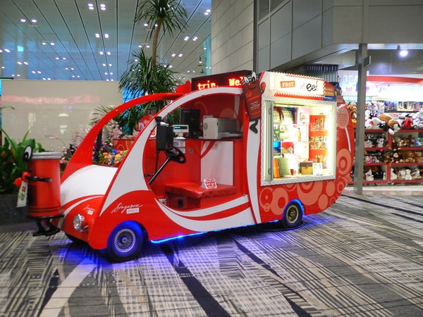 边上的礼品店买到明信片之类,就可以直接在这个邮政车上寄出去给朋友了~