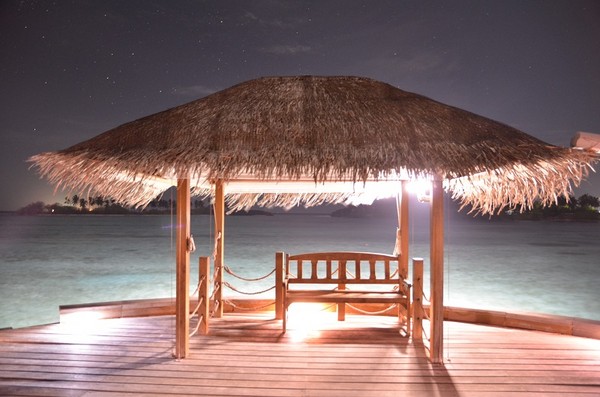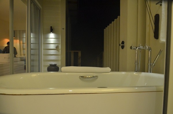 这是露天浴缸,虽然都没用过.......之前看攻略说康杜玛私密性不是很好,有一点道理,白天的时候会有人从屋前的水下浮潜过去,不过私密性也还可以了,晚上还是没人敢下水啊!