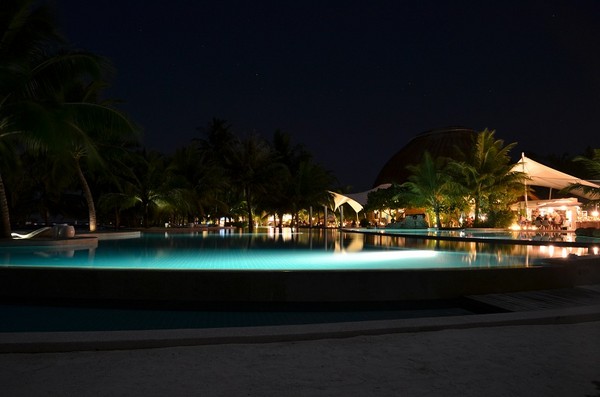 夜晚的无边泳池,旁边是餐厅,酒吧,自助餐,没吃过,听说价格还可以。