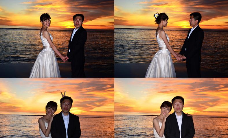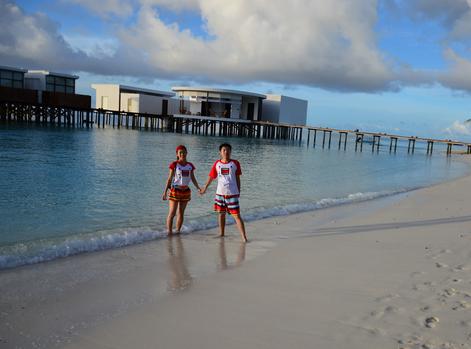 这次蜜月选在了婚礼仪式前,主要原因:之前在影楼拍的婚纱照坑爹了,一张都选不出来,为了让我们的婚礼仪式上有漂亮的婚纱照,我和LG决定去马尔代夫自拍属于我们自己的婚纱照。