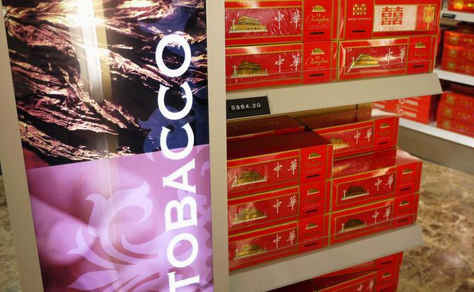 去的时候看到新加坡免税店卖中华烟64.2(新加坡刀),