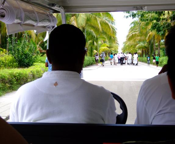 但是jd岛依然有车接,其他岛的人都是在走,只有jd的人是坐车。