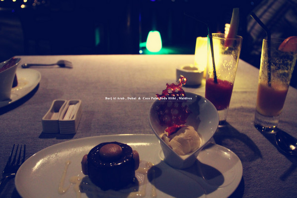 午餐晚餐,我们尝试过房间点餐,很推荐甜品。晚餐几个餐厅我看到有好多帖子上大家都介绍的很详细了。建议每个都去试试。300美金一对夫妇的私人沙滩专属餐很浪漫,享受的不仅仅是美食。酒吧也不错,很多座位可选,不带酒精的饮品很适合女生,吹着海风,听者歌,看着天空上的繁星点点,一切都是那么自然恬淡......