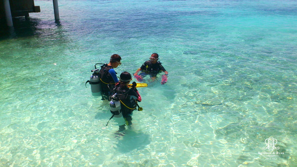到水屋那天,我自己去参加了水肺潜水,当然之前几天都有认真上课和测试,要先通过测试,以及上课,学习多个基本课程,才可以正式下水的,padi证书是非常值得考的。那天是我和教练还有另一个客人一起。教练说我非常出色,是阿,我可是游泳世家出来的啊,哈哈哈,其实会不会游泳都能参加水肺潜水,麻袋潜水考证大约600美金。注意,不要吃太饱,水下呼吸要缓慢,其实在水下好轻松好自由,上岸后我们背着气瓶回潜水中心,气瓶太重了,我背不动不小心摔了一跤,大腿肌肉拉伤到现在还没好。