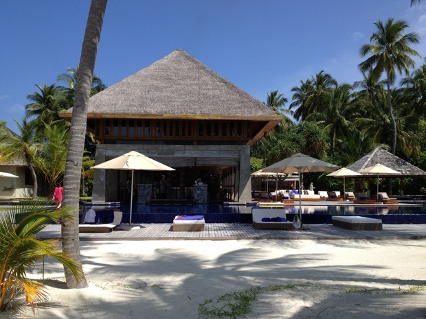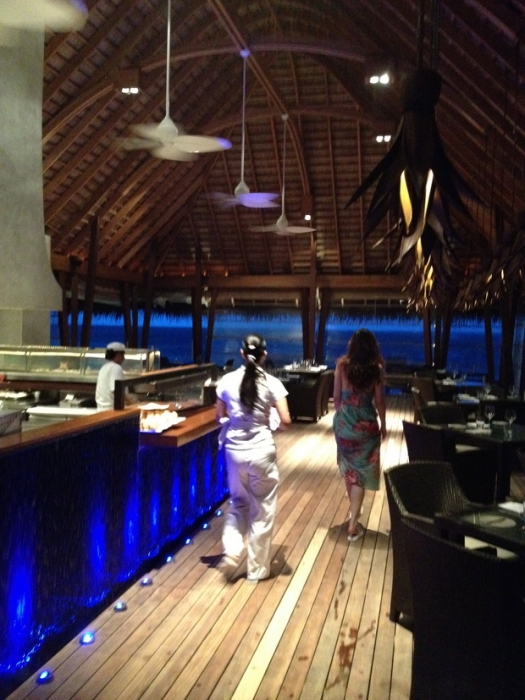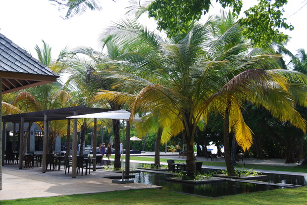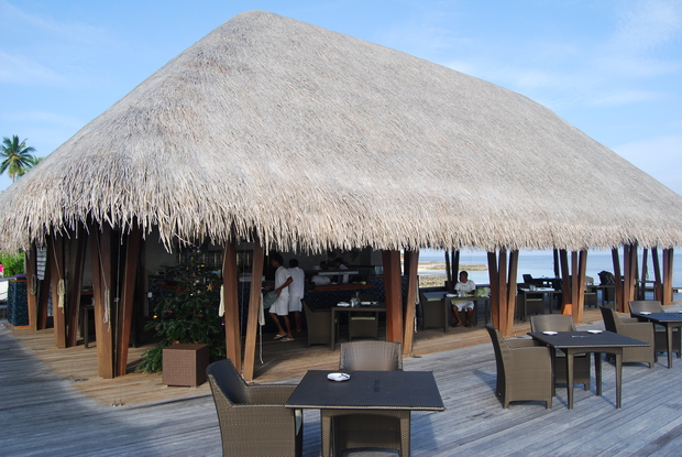 岛上有三个就餐的地方,一个是早餐,还有二个是晚餐的地方,早餐的地方也可吃,但没风景,建议去火餐厅或者鱼餐厅,下图有图示可以去看看。在下午的时候可以去早餐旁的小酒吧里点点喝的、吃的,还有淡水游泳池在那里休息一下也不错,也可以到海边,有阳伞,也可以到这个酒吧点吃的。