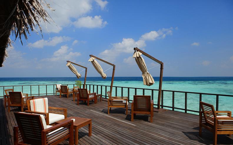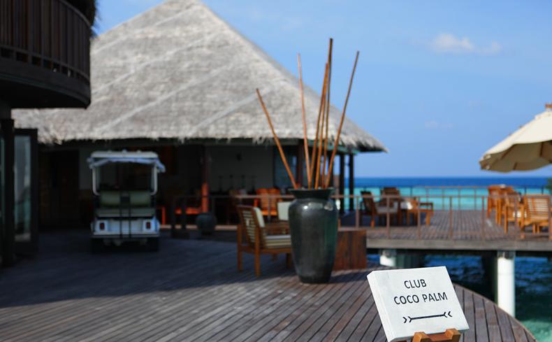 Sophia带着我们去沙屋的路上还顺路介绍了岛上的公共设施,包括餐厅、bar、公共无边泳池、前台、