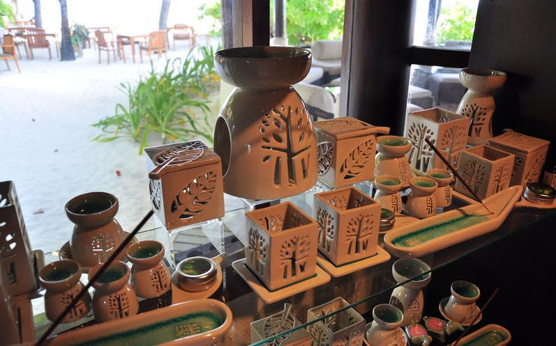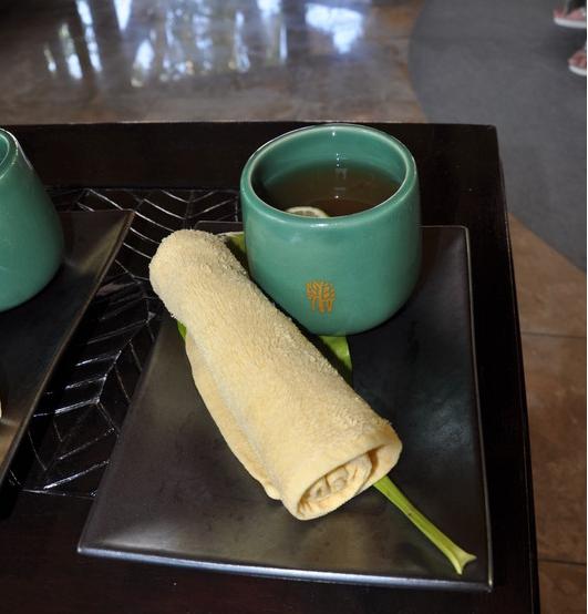 通过栈桥首先到达了接待大厅,是一个欧洲美女接待的我们。首先一人送来了一杯欢迎饮料和一个冰冰凉的毛巾,都是lemongrass的味道,超级清新。我俩都不舍得放下啦!在岛上的精品店特意买了一瓶精油,回来还在天天用于香薰,老公说闭上眼跟在马代似的~哈哈哈