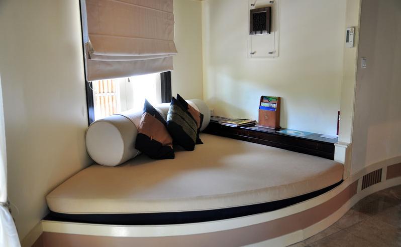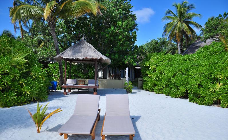 刚知道是1号房间的时候我还有些郁闷,觉得离餐厅会不会吵,私人沙滩上会不会经常有人经过,后来证实,我的担心完全是没有必要的。首先岛上人真的很少,全岛就48间房,所以几乎看不到什么人,根本不会吵,距离餐厅浮潜中心和码头最近,去哪儿都是最方便的。而且虽然我们是观海别墅,但是只有1号房间前面是没有白沙滩别墅的,跟白沙滩的感觉一样,从屋内就能直视沙滩,也拥有自己的私人沙滩,不像别的观海别墅,没有而且由于前面还有个白沙滩别墅,所以从屋里看不到大海。我们的朝向也很好,日出日落一出门就看到了。所以后来我是非常满意这个房间的!!