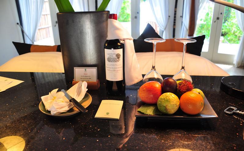 我们是10月去的,住的豪华观海别墅,正好还有悦榕庄的住四付三的活动,蜜月优惠还送了一瓶红酒,一个水果盘,一个私人BBQ(不含酒水,可以用赠送的红酒,也可单点),SPA90min课程和SPA8折优惠,还是挺值的。现在PS那么强大,所以......哈哈。