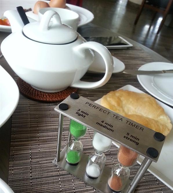 喝茶时还有专门的沙漏用来计冲泡的时间,真是极尽奢华
