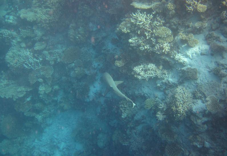 另外海里的东西不管你知道不知道的,别动手摸他,后果是你想不到的。无论在海里看到什么,别惊慌。惊慌失措比海里的海洋生物更可怕。不小心呛水有可能让你短时间失去知觉,所以很危险。记住要保持镇定,你的个头跟鲨鱼差不多大。就算看到鲨鱼它也得掂量掂量是不是袭击你~~更何况珊瑚礁附近不会有大型攻击性鲨鱼。