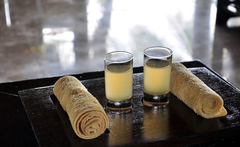 结束半小时的课程,就开始巴厘按摩了。在正式的按摩之前,按摩师会再次询问你想要的力度,重点按摩哪儿,哪个地方按摩的时候需要回避,等等。首先是洗脚。使用的是橘子水洗脚的,很清香很好闻。之后就裸着趴到床上按摩。我们用的精油是soothing,用于舒解肌肤的紧绷感,改善粗糙、干燥的现象,提高肌肤自身的防御能力,调整肌肤,使肌肤回到正常状态。我俩都很舒服,以至于都睡着了,直到按摩师叫我们仰面躺我们才又清醒。历时一个半小时的按摩感觉很快就结束了。起来休息的时候会有水果和凉茶供我们品尝。