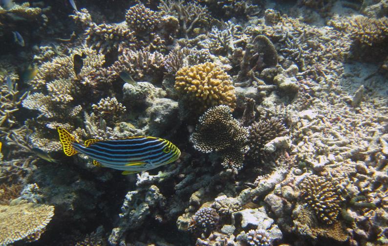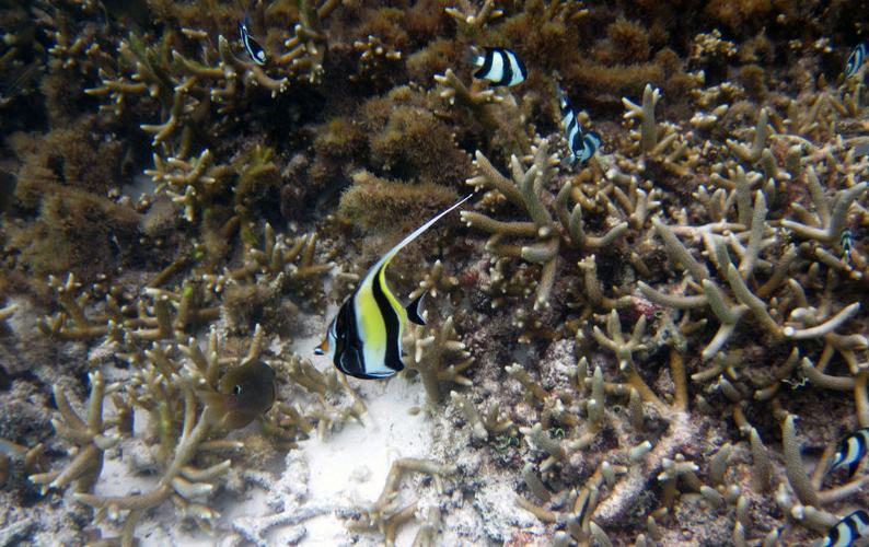 浮潜一圈很费体力,我们用了两个半小时,中途没有休息,拍照时间也很短,几乎都是快游,才游了一整圈。不过我们觉得值,这回没有留下这项遗憾~~全岛的海底世界我们都一览无余了。心里很愉快。要是昨天能绕对面ihuru岛浮潜一圈那就更完美了!