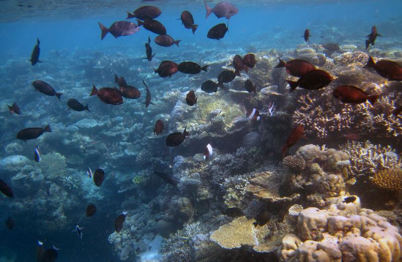 我们是下午4:30~6:30在伊瑚鲁岛上,本来想浮潜绕岛一周,但是到一半的时候明显起浪了,换气时发现有一片云在不远处下雨,还慢慢向我们这边移动,而且我们身处的位置离岸边越来越远,相当于背着岛游。我开始有些害怕,怕下雨浪大,水下暗流多,最后决定往回游。后来证明我的决定是正确的。我们刚上岸没多久就开始下大雨了,而且风很大。我们每人借了一条浴巾,在码头等待多尼船接我们回家。