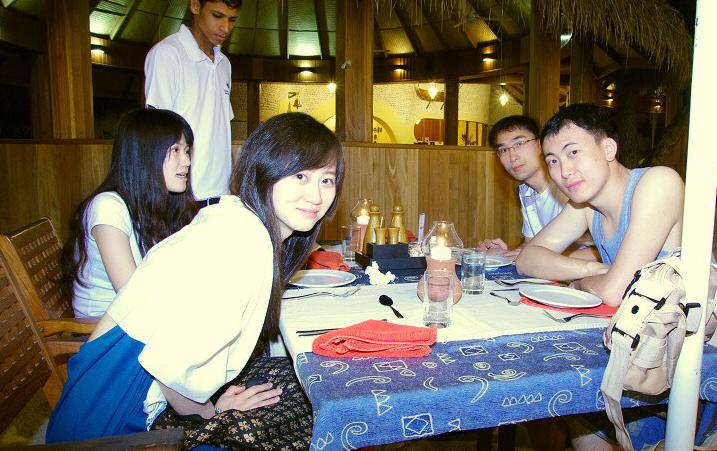 到了吃饭时间,吃饭去了,幸亏是FB,不用担心吃泡面的问题了。这里推荐大家还是选一些全包岛比较好,省得看到BB和FB之间的差价很大的时候做不出决定(很多岛BB和FB人均都差不多相差800RMB以上一天的...)。