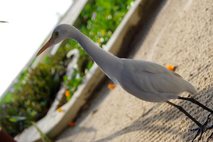 这货老是呆呆的在餐厅外面慢悠悠走着,看上去就像飞不了的样子(实际上我也没见过它飞)。样子很傻很2,请原谅我,但这的确就是这货给我的唯一印象,哈