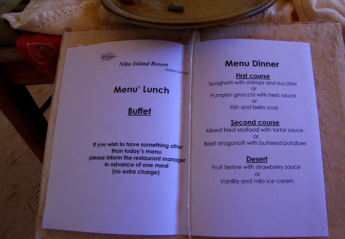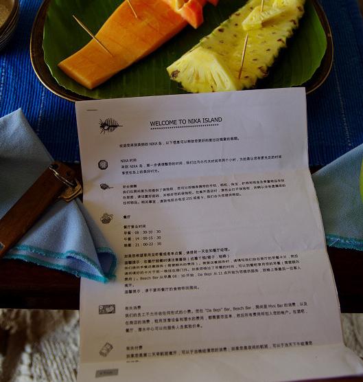 之前谈过,Nika午晚饭很多时候是自助餐和点餐结合,这就是Nika的菜牌,很浓郁的热带海岛感觉