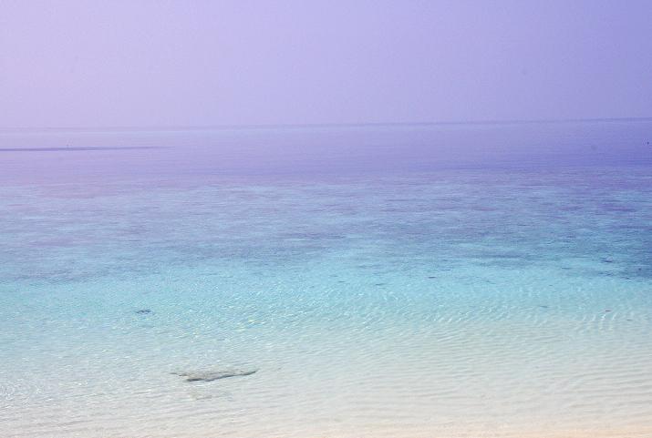 好美的海啊,看到从沙滩出去的多种颜色么?首先是纯白的沙子,然后就到珊瑚带,外面十几米深蓝色的地方就是海沟了!