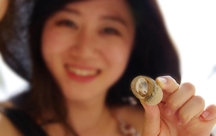 很可爱的寄居蟹,手一抖那蟹就会从贝壳里面掉出来,然后一眨眼就不见了,跑的速度相当快