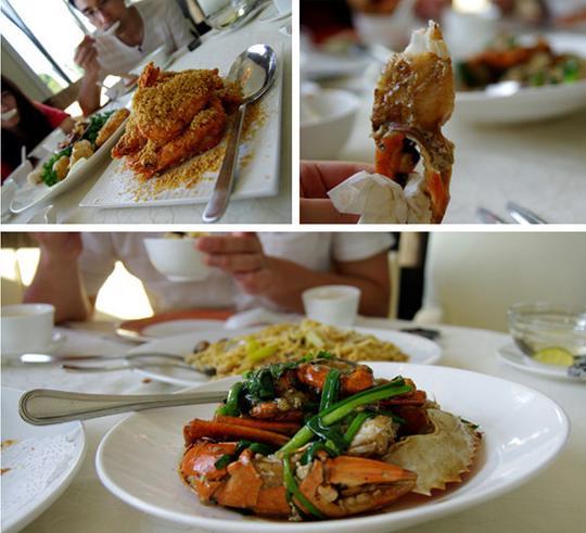 走咯走咯,赶去岛的另一边(也就5分钟路程)的餐厅吃饭去了。在餐厅旁边的渔船码头(这是出海垂钓之类活动的码头,这一带有点工程,平时也运垃圾,所以这个码头下面那几米的水基本上全是建筑废料),居然看到了三条魔鬼鱼在慢慢的晃悠。想不到魔鬼鱼同志如此重口味呀,到处这么好的水不去,非要待在这种地方