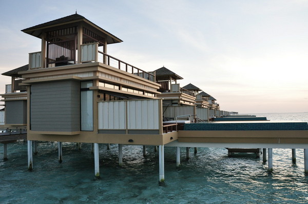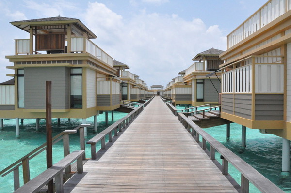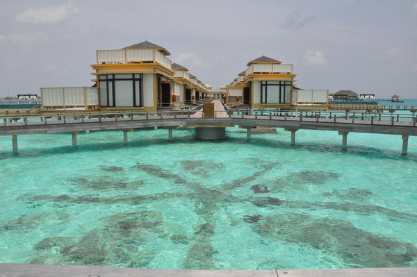 我去的薇拉瓦鲁岛,俗称海龟岛、AV岛。水屋是比较有名的,海中阁,一起同行的一对夫妇跟我们都觉得没有太大的意思。原因是水屋与主岛分开的,活动范围很小,除了自己浮潜,在房间里也就晒晒太阳,大多数中国人来都是为了照相,而且水屋价格也不低,如果重新选择,3沙1水,我觉得比较好。还有当初有人说水屋很吵,睡不着,我没觉得。