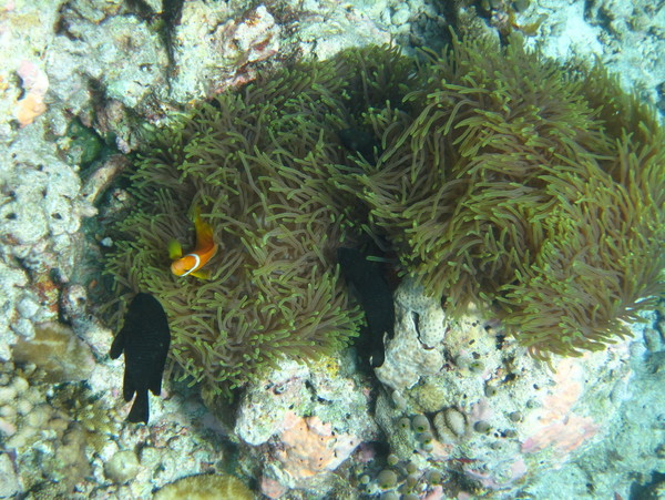 第一天我去环礁浮潜,头一次去,身上没带钱,老婆害怕不敢下水,小黑带着她浮潜,水里找我要相机,帮我拍了很多好看的照片,可惜没带小费。第二次去环礁浮潜,下水前我就跟一个小黑说帮我拍照片,后来上岛我给了5美金小费。
