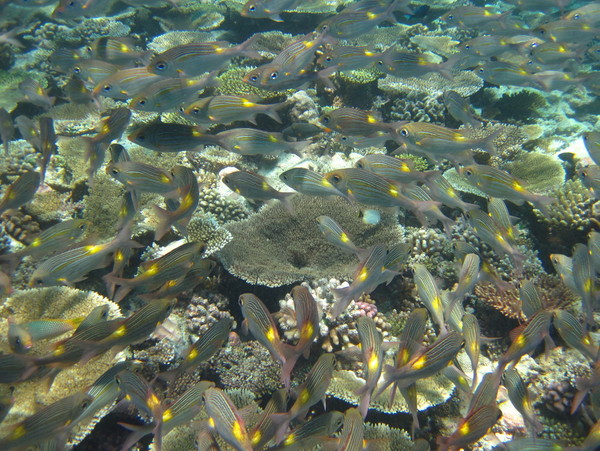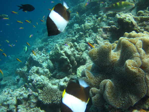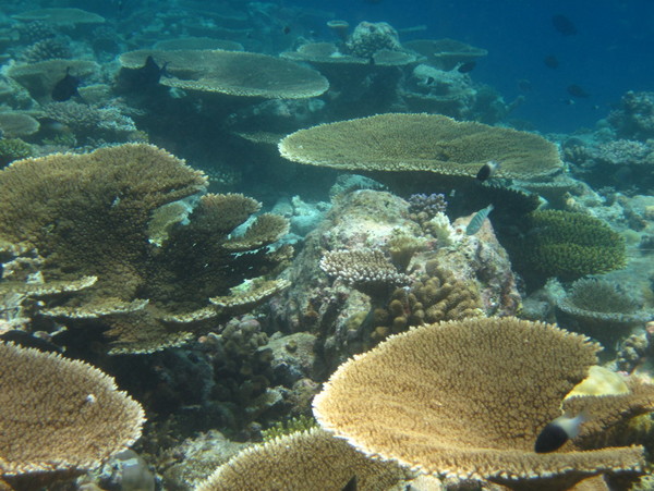 单号日落端往外就是海沟,浮潜好,单号豪水浮潜最好,黑黑的都是珊瑚,水屋离海沟很近,浅色的透明的地方,鱼都很少。