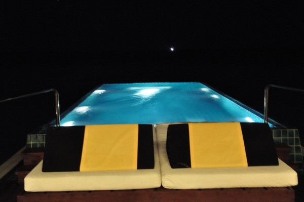 补充一下,蜜月送的SPA只有你做身体按摩打8折,不是送你免费做,像我做的套餐,是没有打折的,如果想在岛上做2次SPA,找中国人LEO,我们去的时候第二次身体按摩有7折卡,不过根本用不上。说实话,蜜月套餐就送点水果,给瓶红酒,铺个HONEYMOON(没给我们铺,擦)没别的了,新航可以申请,飞机上十几对发蛋糕的,全是中国人,巧克力蛋糕,拿着上岛是一种负担,所以建议大家别有便宜就占。。。